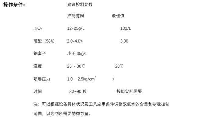 生成均匀粗化的铜面,显著增加铜面的附著力;槽液稳定,微蚀速度稳定;操作控制简单;不含有螯合物,废水处理简单;生产无须高温,改善工作环境。