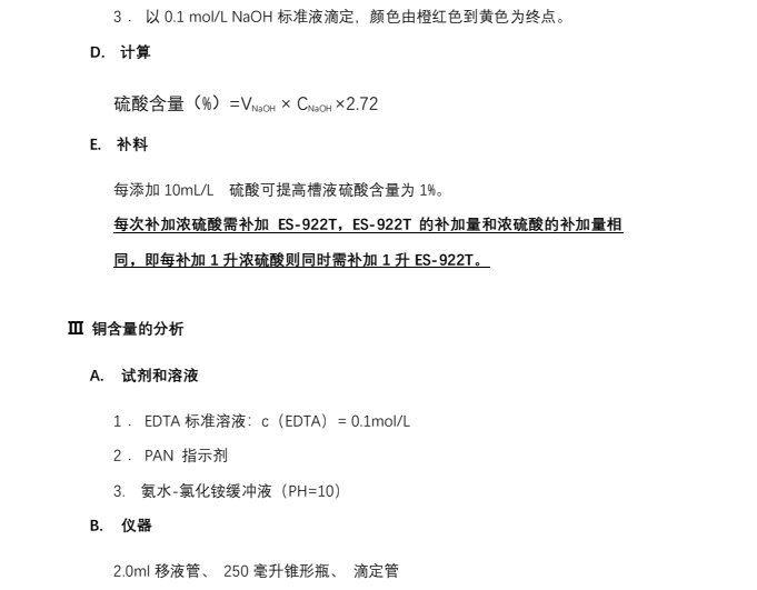 2.手动添加可按照药水分析结果补加浓硫酸、JFR-922T和双氧水。