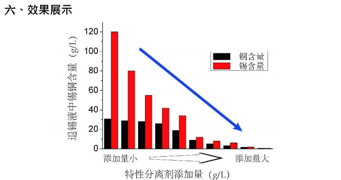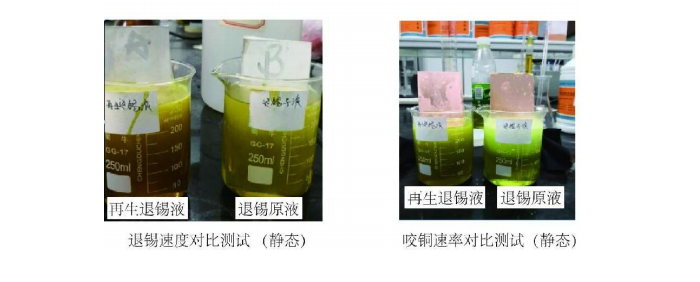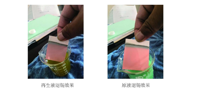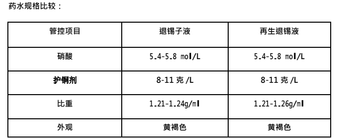 1、此工艺性能稳定,操作维护简单,离线处理,不改变现有退锡液添加方式,产线新子液与再生退锡液切换操作容易;